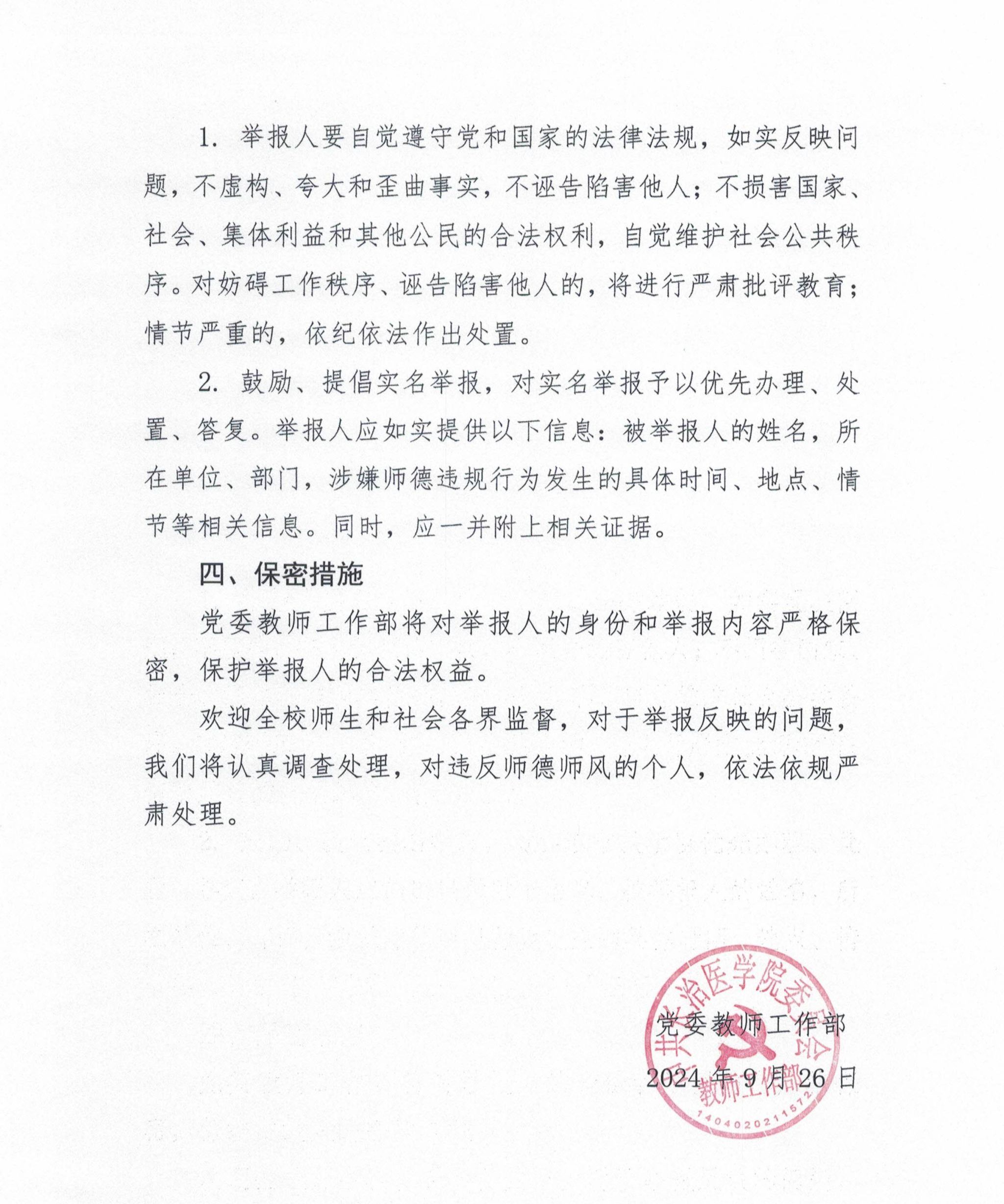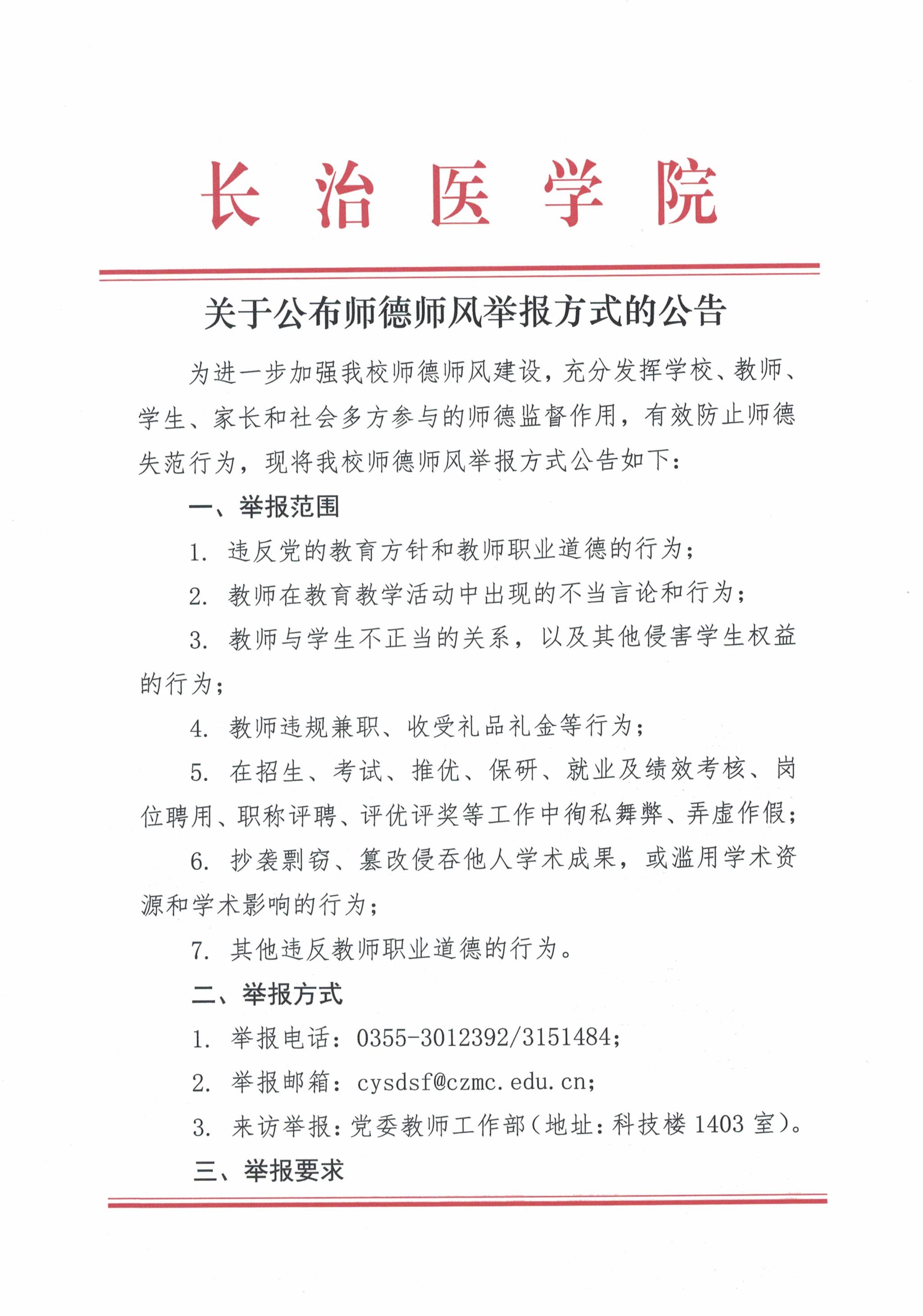 关于公布师德师风举报方式的公告