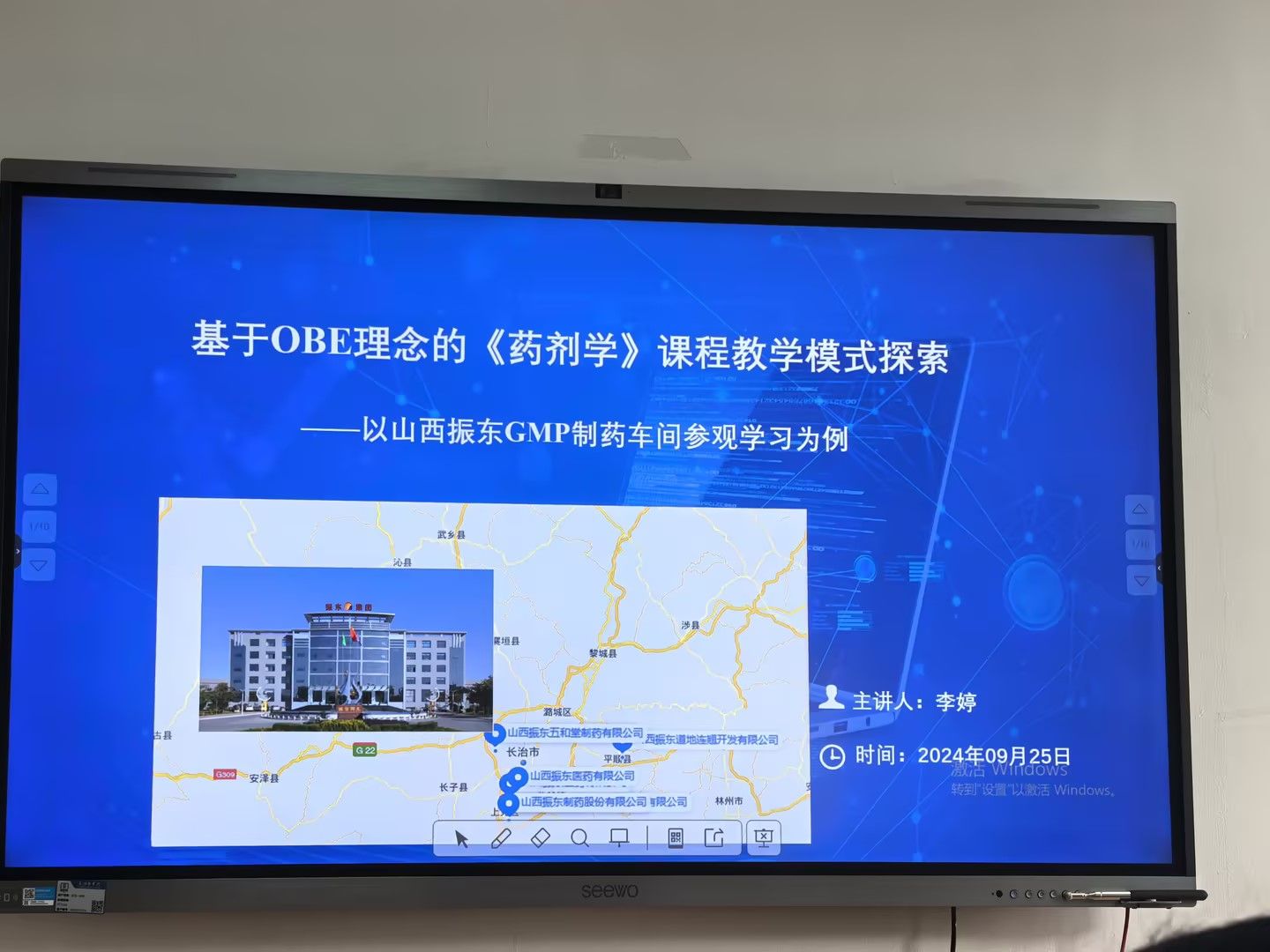 学术交流环节,EMC易倍药剂学教研室李婷和药物化学教研室郭文阁分别做了题为《基于OBE理念的药剂学课程教学模式探索—以山西振东GMP制药车间参观学习为例》和《基于振东制药学习的教学科研反思》的报告,分享了他们在振东制药股份有限公司交流学习的收获和体会。