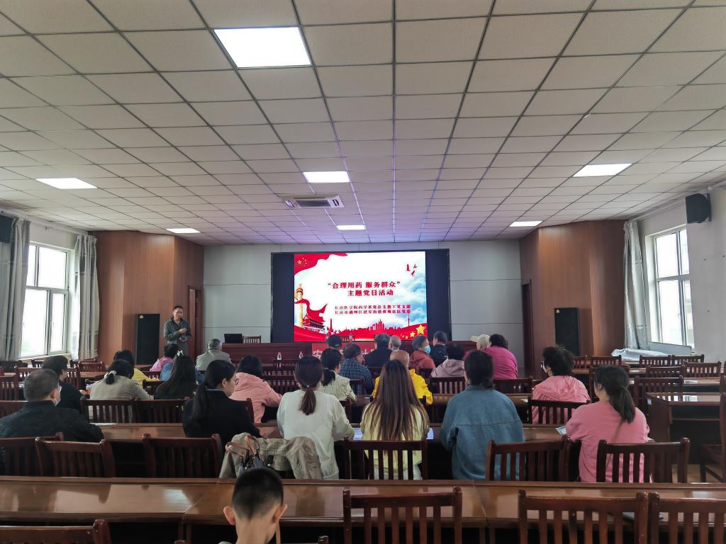 为贯彻落实党的二十大精神,进一步发挥党员先锋模范作用,以实际行动践行“我为群众办实事”,5月28日下午,药学系党总支与延安南路街道淮海社区党委联合举办了“合理用药 服务群众”为主题的党日活动。药学系党总支师生党员及入党积极分子、淮海社区居民共计80余人参加,发放安全用药宣传资料200余份,发放自制香囊100余枚。