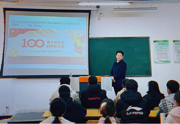 为深入学习贯彻习近平新时代中国特色社会主义思想,落实公司处级以上领导干部联系员工班级工作制度,2021年12月14日下午,EMC易倍官方网站副经理宋晓亮在五龙校区日新楼504教室为联系班级药学2101班作专题讲座。讲座主题为习近平总书记在庆祝中国共产党成立100周年大会上发表的重要讲话以及十九届六中全会精神概要。