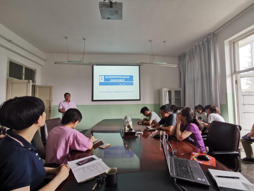 与会同志首先学习观看了第十五届全国党员教育电视片观摩交流活动优秀作品《支部条例一起学》,随后药学系药物分析教研室段晓副教授做了题为《聚前药胶束药物自递送系统的构建及抗肿瘤活性研究》的交流报告,主要介绍了纳米药物递送系统(聚前药胶束)在肿瘤治疗中的应用,内容包括药物自递送的设计思路、聚前药的性质测定和抗肿瘤效果,以及目前正在开展的研究工作。
