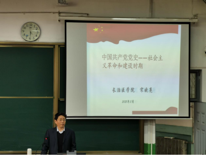 根据公司党史学习教育的安排部署,5月7日下午,校党委常委、副董事长宋晓亮在校本部北区第5阶梯教室讲授党史教育专题党课,药学系教工和员工党员到场聆听。