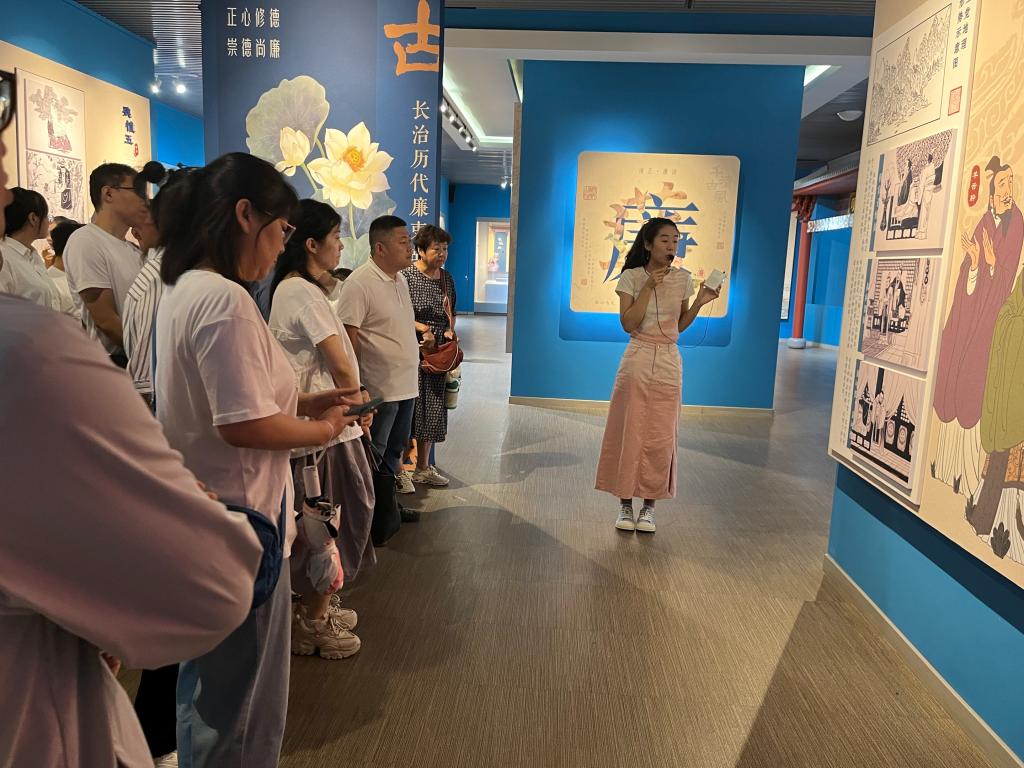 千古清风——长治历代廉吏故事展厅采用形象生动的传统插画形式,展示了春秋、汉、元、明、清五朝的18位长治本土廉吏的生平和故事。在讲解员的讲解下,师生们沉浸式“听清音、察廉吏”,进一步了解了几代长治廉史正心明道、怀德自重的廉洁人生。