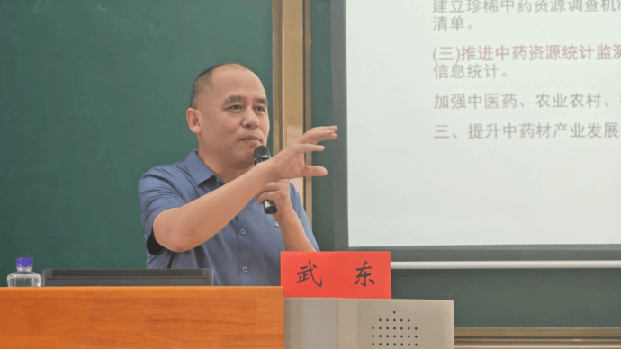 6月17日下午,在“上党中药材品质提升与利用厅市共建山西省重点实验室培育基地”2025年科技开放周活动之际,长治市中药材产业发展中心副主任武东教授应邀来公司作《中药材产业发展现状与职业前景》讲座。上党中药材产业公司、EMC易倍师生200余人参加活动,上党中药材产业公司副经理王涛主持讲座。